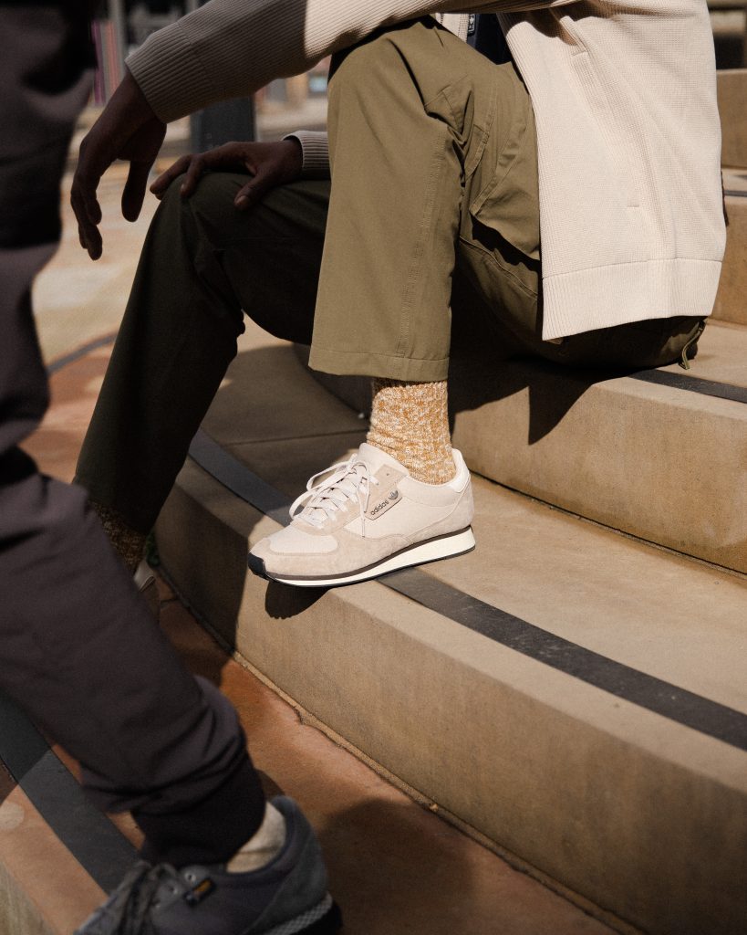 Moving onto the clothing collection, adidas SPEZIAL introduce timeless, outdoors-inspired outerwear: the popular Haslingden Jacket returns – a piece that highlights the SPEZIAL DNA with its utilitarian pocket system. The Moorfield Jacket is another quintessential SPEZIAL piece – an anorak in a two tone ‘Sesame’ and ‘Green Orbit’ colour palette. Whilst the lightweight Topfield Liner is padded with insulative Primaloft down and rounded off with a bespoke tonal SPEZIAL Mod Trefoil stitched logo.