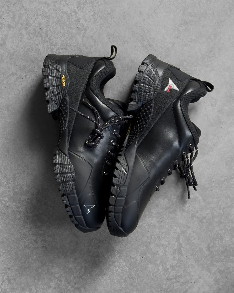 This season’s Neal is a new, more lightweight take on a low-top Italian alpine shoe. The main characteristic is a shiny calf-leather upper, with a waterproof membrane. Underfoot, Vibram’s Megagrip sole offers grip on dry and wet terrains.