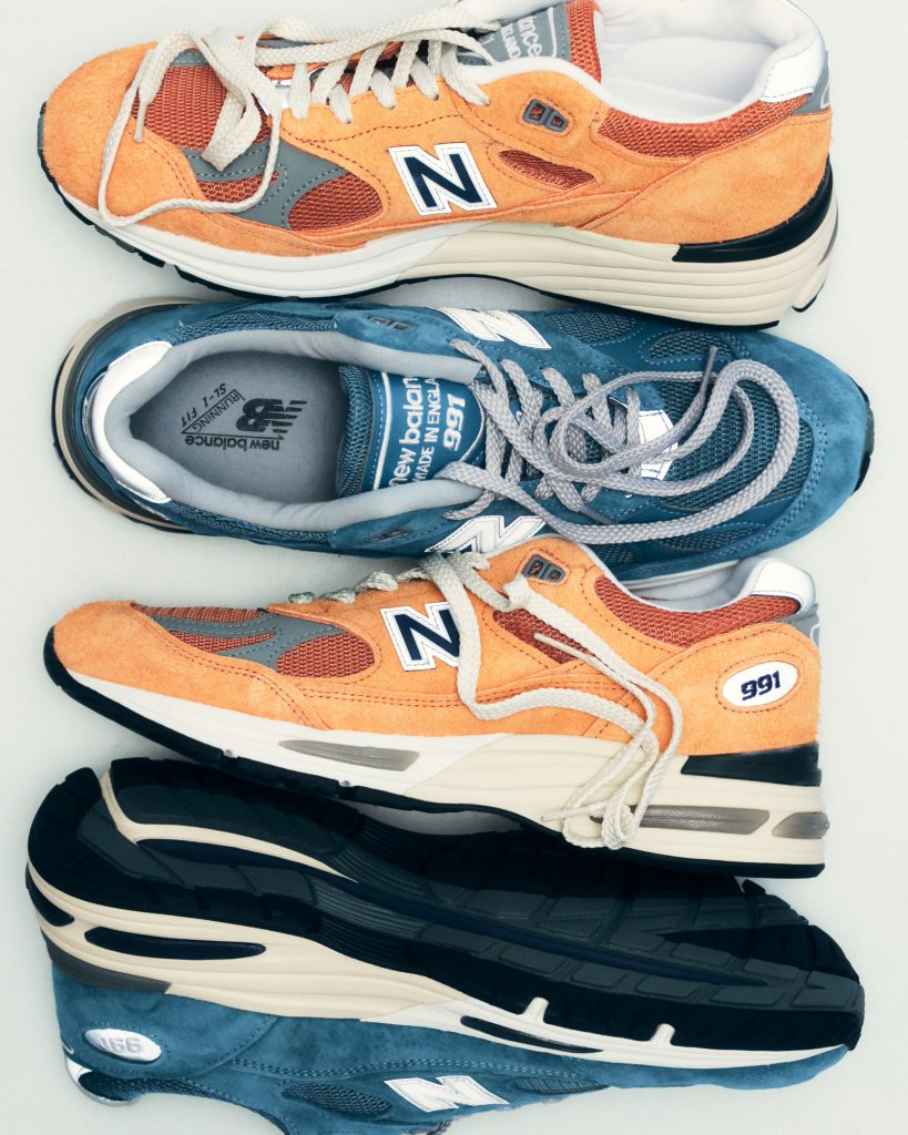 New Balance 991v2 MIUK in ‘Gold Earth’ and ‘Ocean Blue’. Retro running style handcrafted at NB’s Flimby factory using pigskin suede and mesh uppers. Style renowned for attention to detail and comfort.