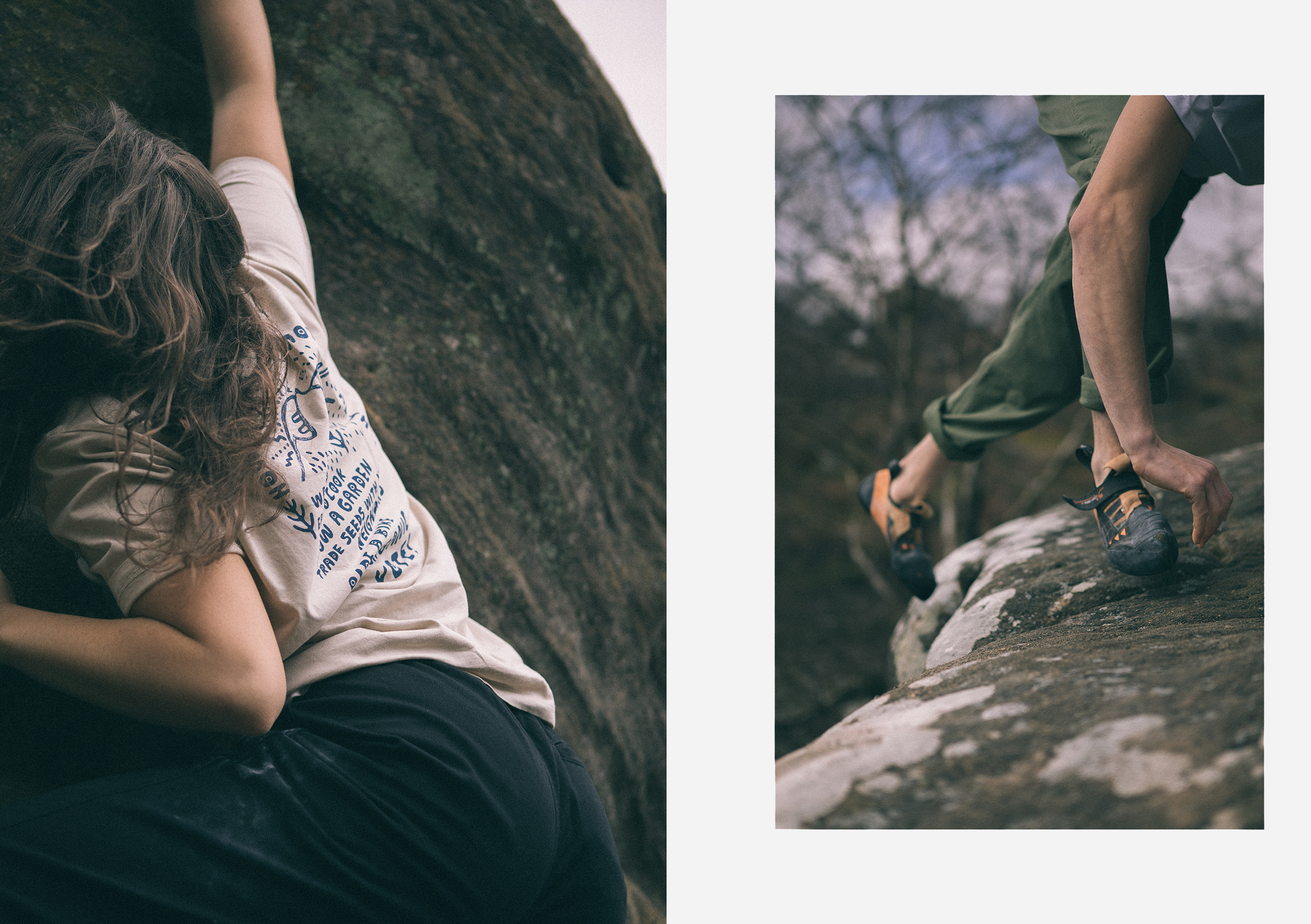 Thanks for having us come along, Jordan is a climbing instructor and route setter at a local climbing gym and Aimee is a Graphic Design student and part time stockroom assistant for Hip.