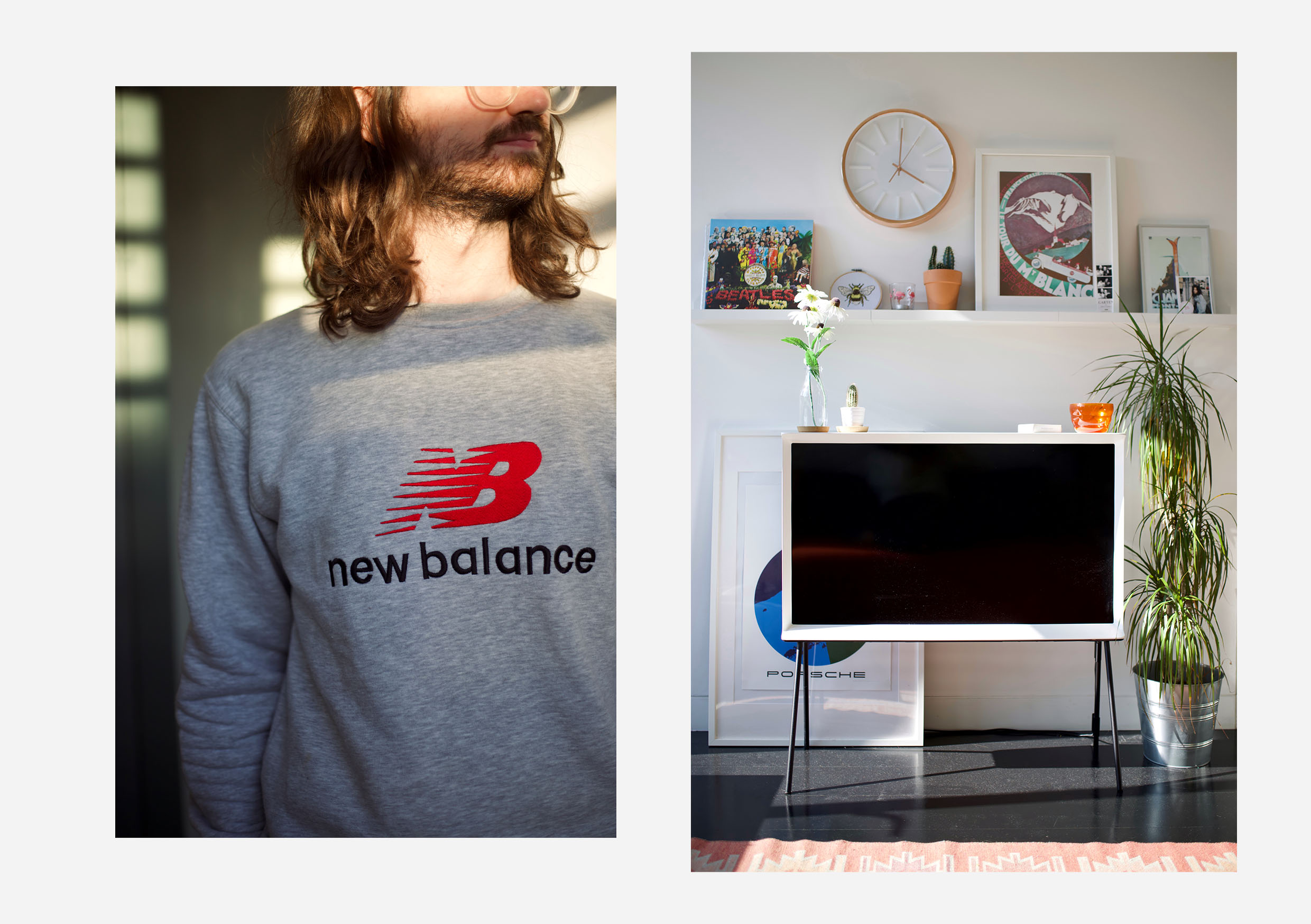 It has to be this grey logo sweatshirt, I picked it up at an NB outlet for about £10 – perfect for WFH. For footwear, the new NB ProCourt is what I’m wearing, it’s a lot easier to keep white shoes clean when they’re staying indoors!