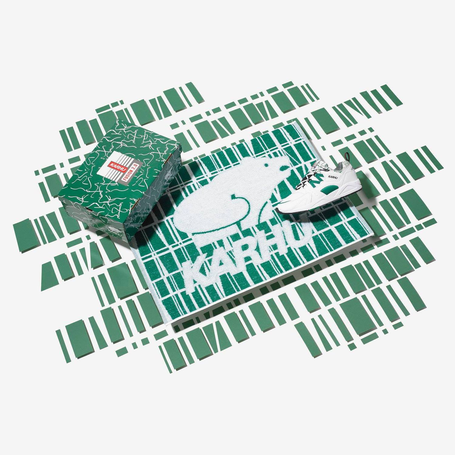 The trainers arrive in a presentation box alongside a limited-edition sports towel that has been made in collaboration with Finlayson. Finlayson is Finland’s leading homeware store and this one-off towel features the brand’s classic ‘Coronna’ print in the Fusion 2.0 ‘OG’ colours, a gift that’s included with every purchase.